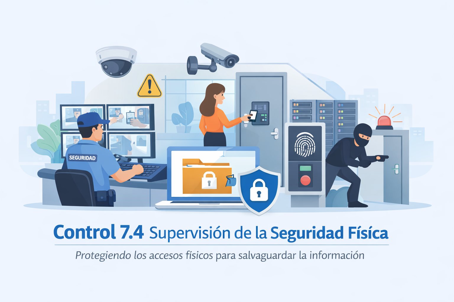 El Control 7.4 pone de manifiesto que la seguridad física es un componente esencial en la protección de la información. No se trata únicamente de vigilar instalaciones, sino de evitar que un acceso no controlado se convierta en el origen de un incidente de seguridad.